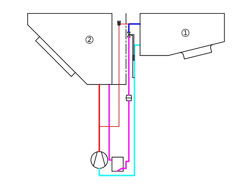 注:①为室内换热器/单元,②为室外换热器/单元。